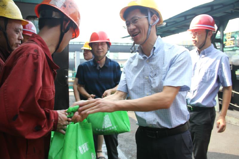 揭安全一行在5、6號焦?fàn)t詳細(xì)了解一線員工高溫作業(yè)情況,叮囑他們認(rèn)真工作的同時也要注意防暑降溫,并將裝有綠豆、冰糖等物品的“清涼禮包”送到員工代表手中,把工會組織的關(guān)懷送到了員工心里。