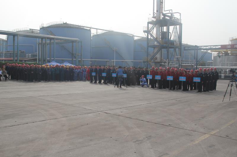 演練模擬邯鄲黑貓?zhí)亢谟推分行?#儲油罐突然發(fā)生氣體報警, 巡檢人員確認為危險化學品炭黑油儲油罐管道破裂造成大量炭黑油泄漏,偵查人員到達現(xiàn)場立即將儲罐進口閥門關閉,同時關閉應急出口閥門。后因不明原因起火,3名工人未及時撤離,為防止事故進一步擴大,邯鄲黑貓公司立即啟動應急處置方案。在確定無法實施有效處置后,啟動更高一級應急救援預案,向磁縣消防大隊、縣生態(tài)環(huán)境局和縣政府匯報情況,請求啟動《磁縣突發(fā)環(huán)境事件應急預案》,在應急中心的指揮下,消防救援組、醫(yī)療救援組、應急監(jiān)測組和綜合保障組等9個工作組迅速實施救援。最后,應急處理及時得當,沒有發(fā)生環(huán)境污染,無人員傷亡,演練順利完成。