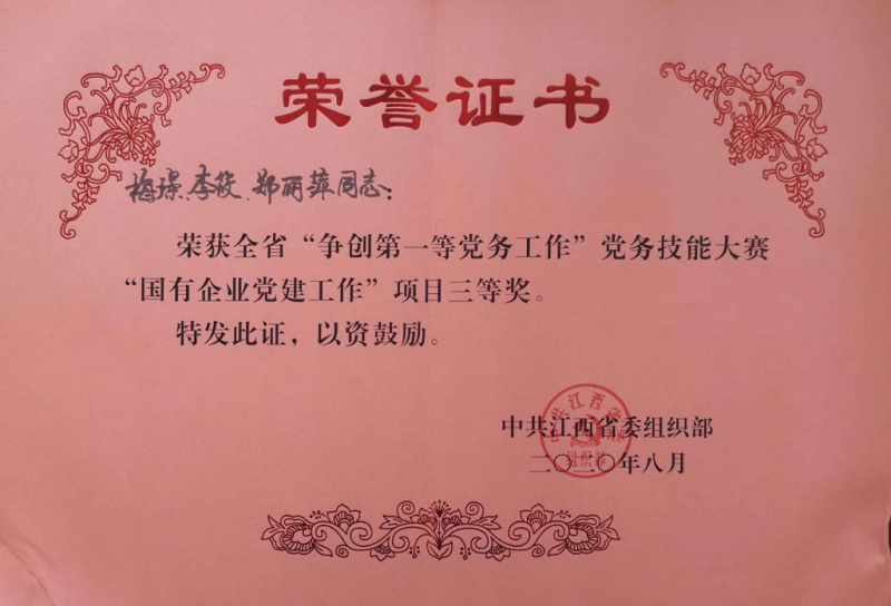 8月25日,集團(tuán)黑貓股份黨總支以“改革發(fā)展出題、黨建引領(lǐng)破題”黨建項目為例,代表黑貓集團(tuán)“出戰(zhàn)”全省黨務(wù)技能大賽鷹潭賽區(qū),期間,經(jīng)過全省11個地市、省直機(jī)關(guān)工委和省國資委黨委共計50余名選手(含團(tuán)隊)的激烈角逐,黑貓股份黨總支團(tuán)隊榮獲全省“爭創(chuàng)第一等黨務(wù)工作”黨務(wù)技能大賽“國有企業(yè)黨建工作”項目三等獎。